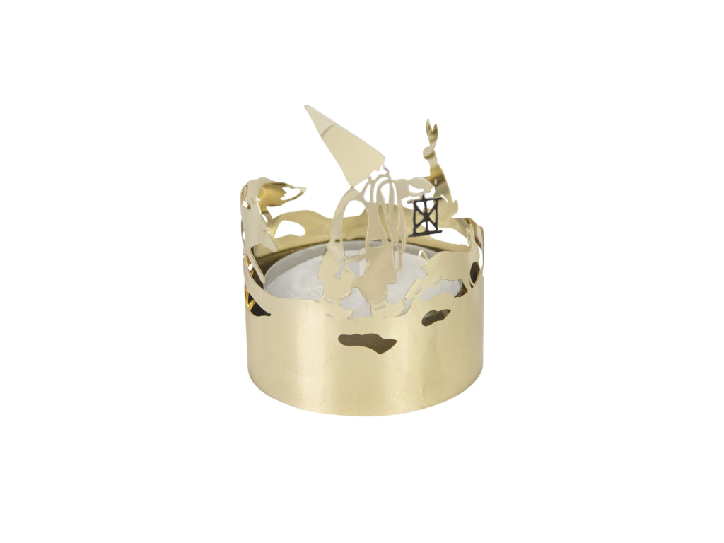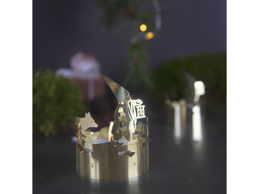 Vánoční svícen s motivem zimní krajiny vhodný pro čajovou svíčku.