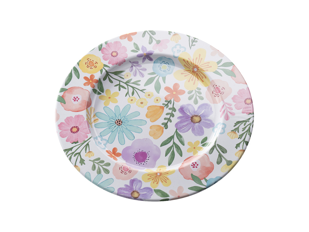 Tác kovový d33 h1.5 květiny barevné. Dekorativní tác do interiéru. Využijete pro aranžmá, svíčky nebo drobné dekorace. (rozměr d33, h1.5, barva barevné).Doplňkové parametry