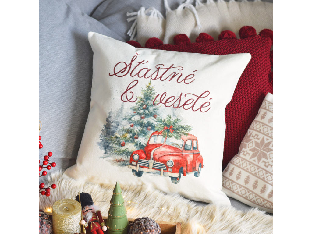 Vánoční polštář - Šťastné & veselé