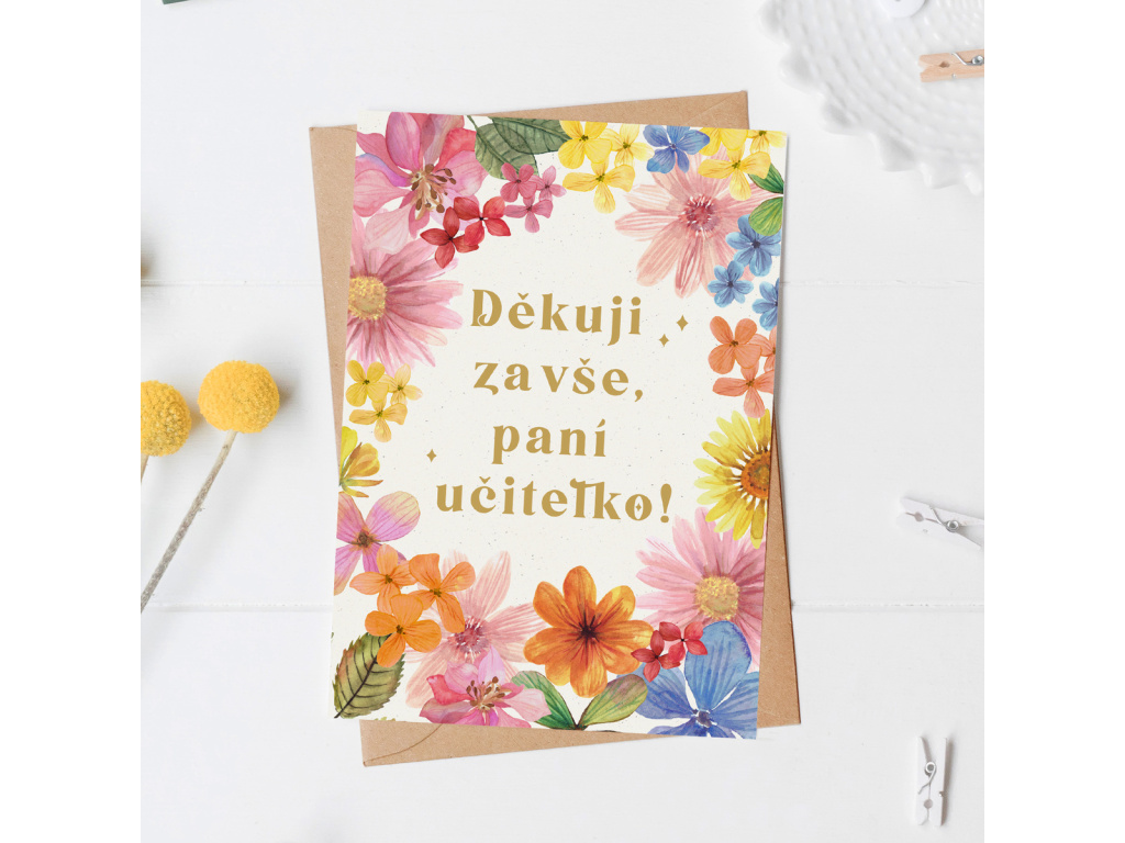 Přání s obálkou Barevná louka - Děkuji za vše!