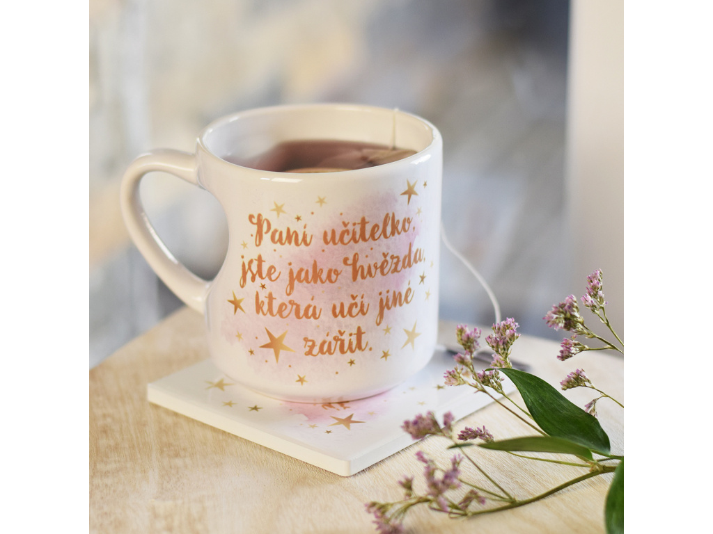 Srdcový hrnek - Paní učitelka je hvězda.