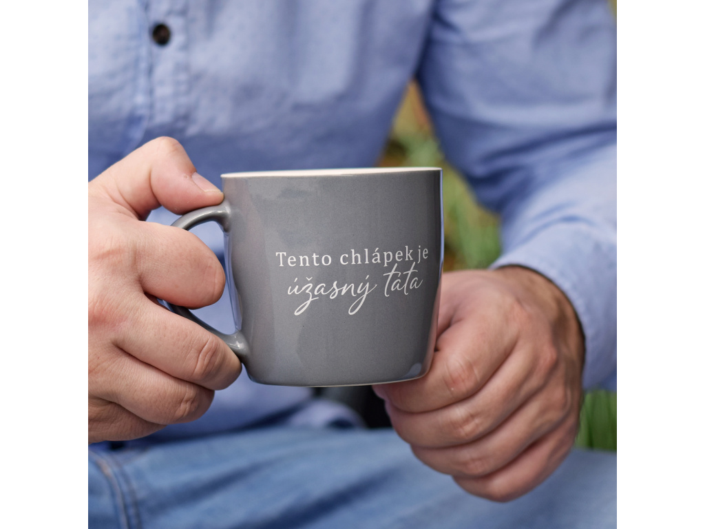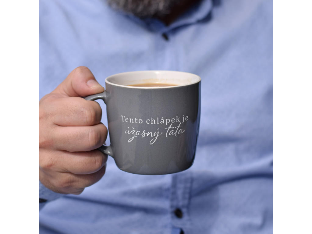 Porcelánový šedý hrnek - Úžasný táta