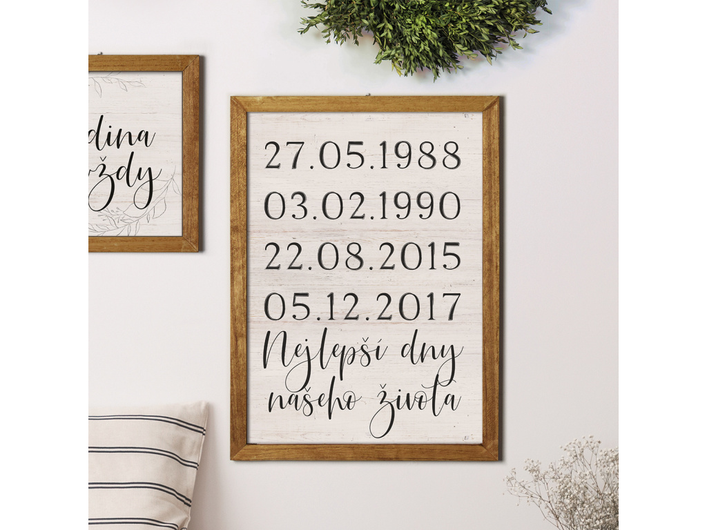 Do této speciální cedulky Vám zapracujeme data narození všech členů rodiny. V kombinaci s bílým dřevem vypadá cedulka jemně a přírodně.