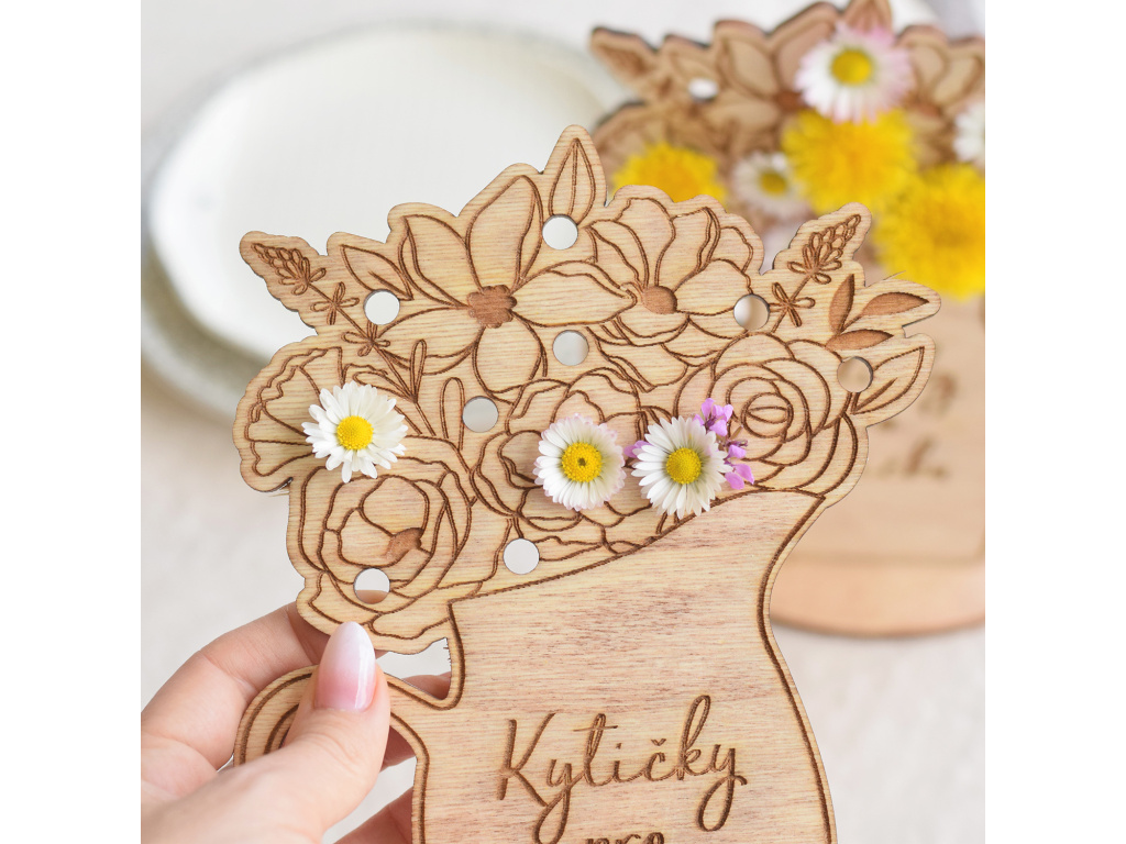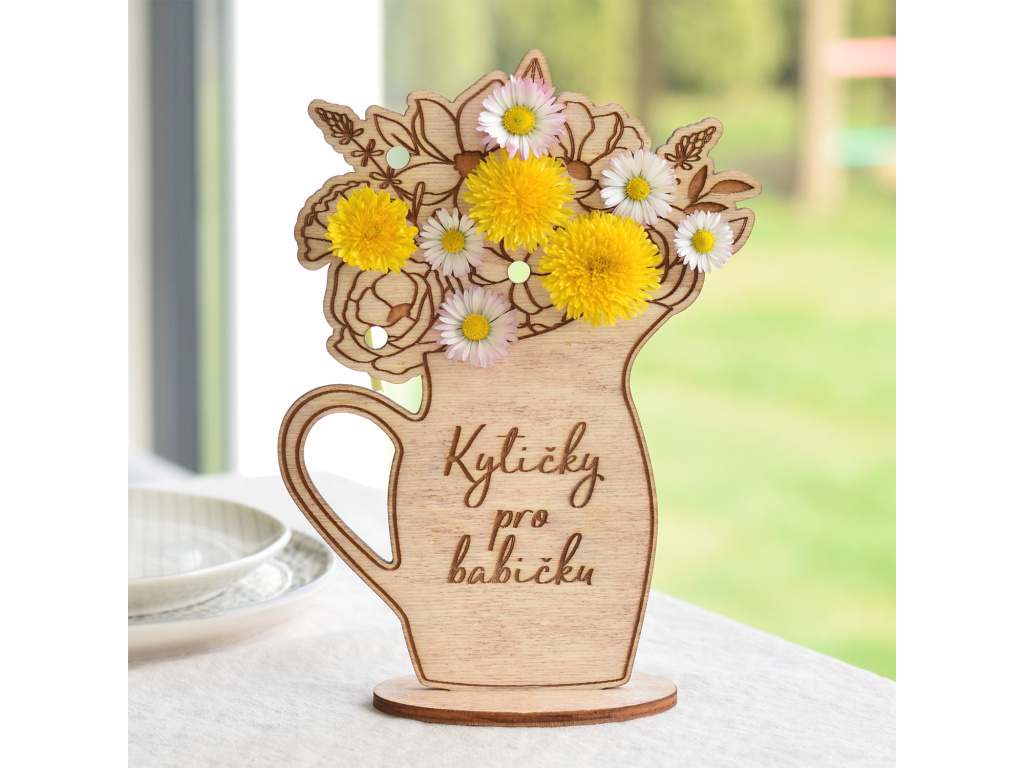 Tato dřevěná vázička podporuje i dětskou kreativitu. Děti jsou vždy šťastné, když mohou babičku obdarovat vlastnoručně nasbíranými květinami.