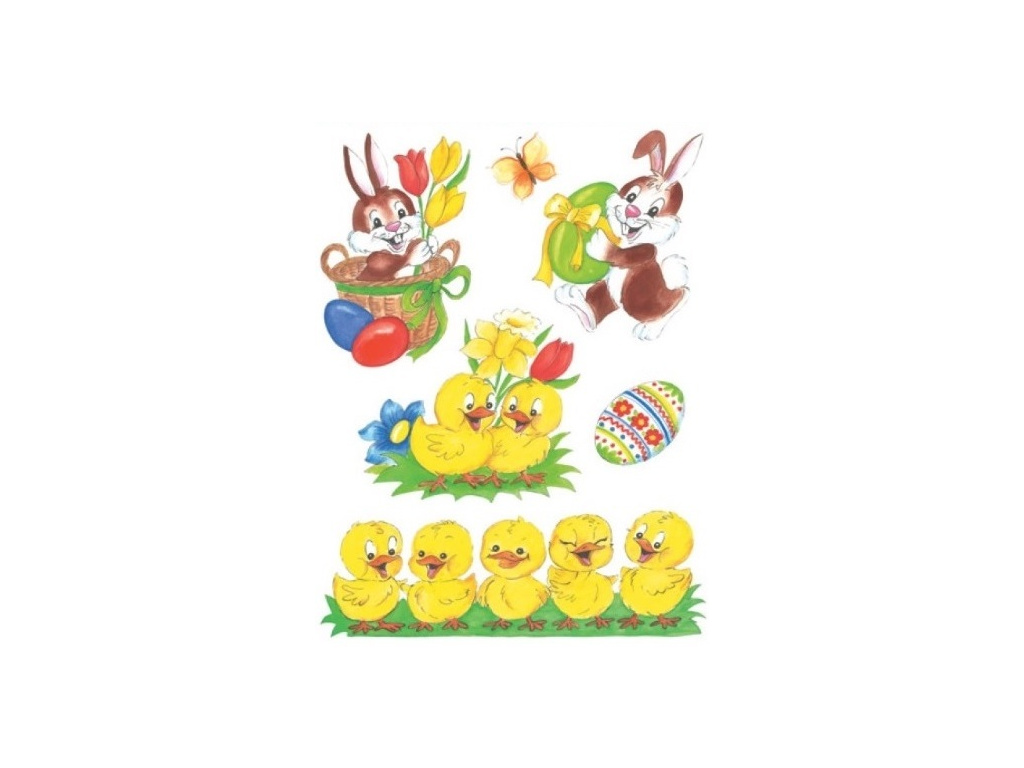 Tyto velikonoční okenní fólie neobsahují lepidlo. Na plochu přilnou elektrostaticky a nezanechávají tedy po sobě žádnou stopu. Vhodné jsou jakékoli hladké plochy, například sklo, výlohy, zrcadla nebo kachličky.