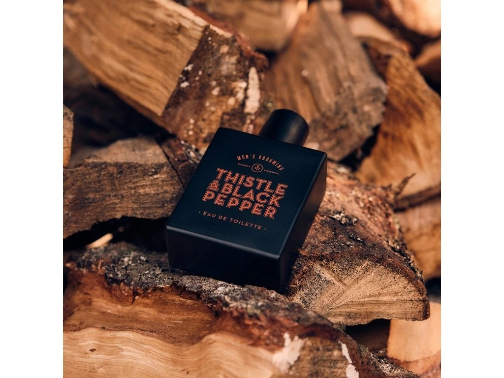 Pánská toaletní voda Thistle & Black Pepper otevírá svou kompozici svěžími tóny citrusů, bylinek, rakytníku a černého pepře, které okamžitě probudí smysly. V srdci vůně rozkvétají květinové akordy růže, geránia, konvalinky a levandule, které přinášejí jemný kontrast k výraznému základu. Ten tvoří hřejivé tóny whisky, ambry, santalového dřeva, pižma, tonka fazolí a mechu, které na pokožce zanechají mužnou stopu.