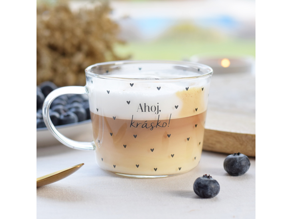 Skleněný hrnek PREMIUM - Ahoj, krásko!
