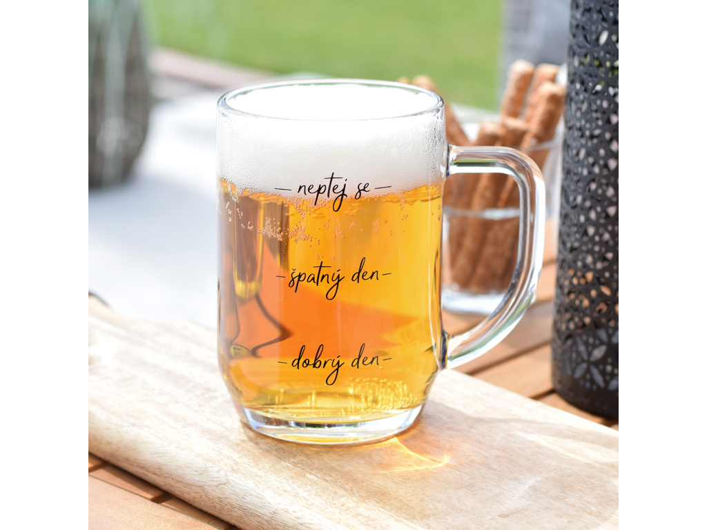 Po těžkém dni bodne jedno pivo na zchlazení žáhy. Po vypití tohoto nápoje bude váš den zalitý sluncem! Tak si na to pořiďte tento parádní půllitr!