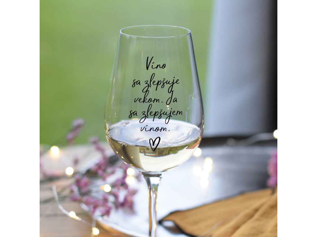 Sklenice na víno - Víno sa zlepšuje vekom. Ja sa zlepšujem vínom - Slovenská varianta