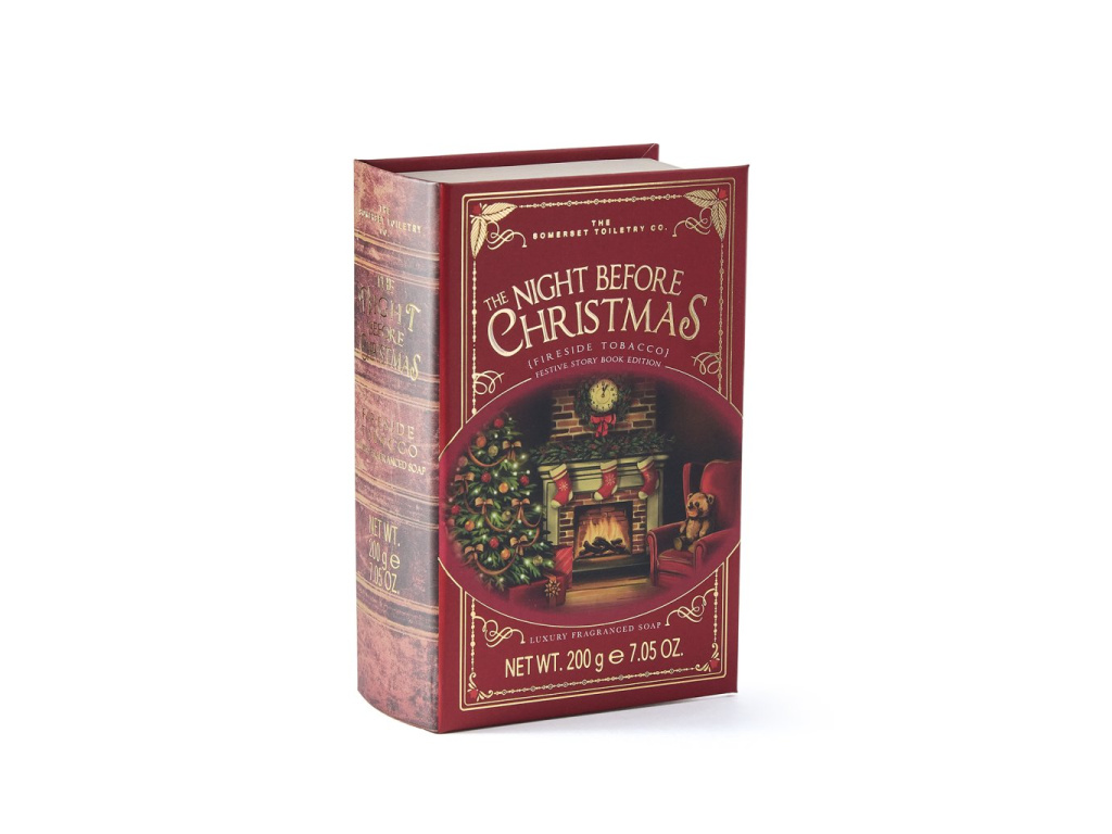 Objevte vánoční tuhé mýdlo Somerset Toiletry ukryté v elegantní krabičce ve tvaru knihy s magnetickým zavíráním. Obklopí Vás vůní tabáku a přenese vás do prostředí útulného domova a praskajícího ohně v krbu. Tato lákavá vůně přináší s každým mytím rukou klid a rovnováhu.