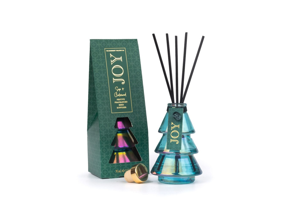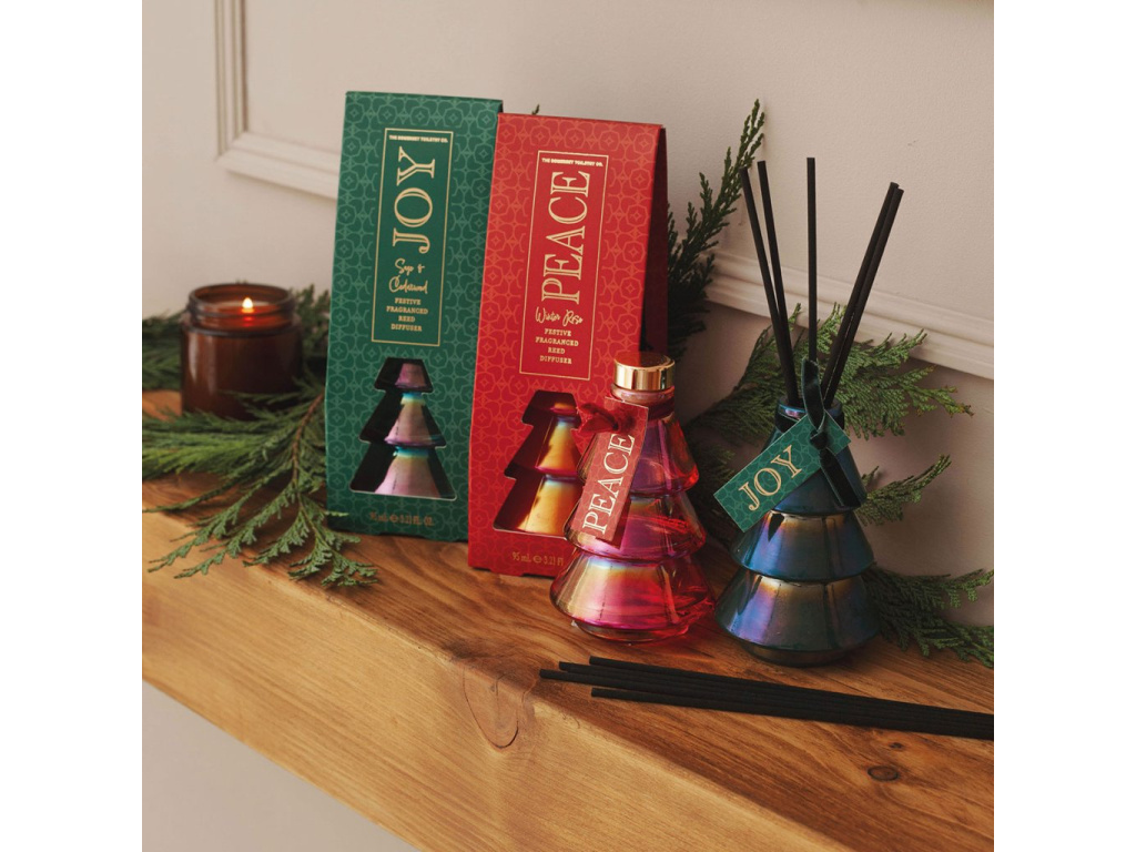 Skleněná lahvička ve tvaru vánočního stromečku v tmavém odstínu s metalickým efektem dodá každému prostoru moderní, ale zároveň hřejivý akcent. Skvělý tip na vánoční dárek pro ženy i muže, kteří ocení stylovou vůni i design.