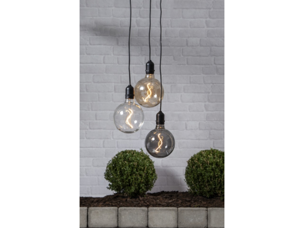 Stylová skleněná koule pro venkovní dekoraci, sklo jantarové barvy s vláknem LED.