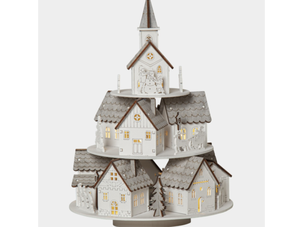 Vyřezávaná hrací skříňka ze dřeva - LED domečky