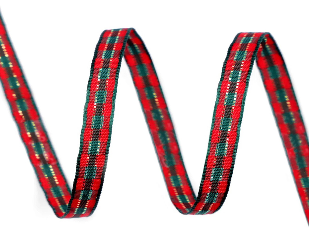 Károvaná stuha s lurexem šíře 6 mm vánoční
