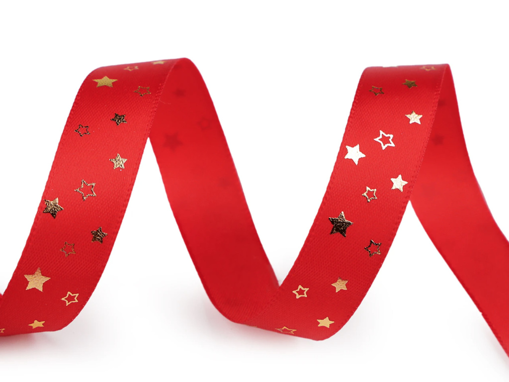 Vánoční saténová stuha hvězdy červená šíře 15 mm