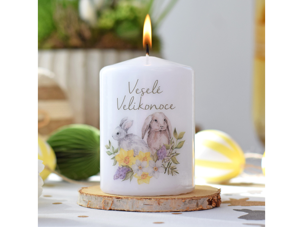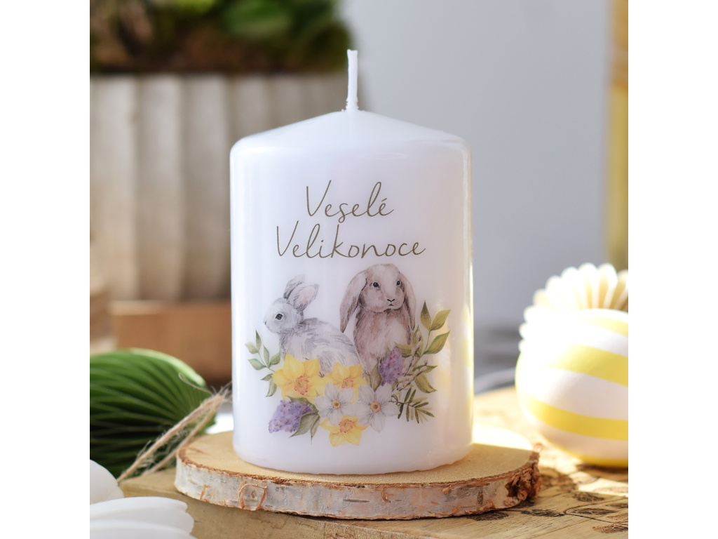 Ozdobte si svůj domov a přivítejte svátky jara s českou pilířovou svíčkou! Ručně malovaný design zajíčků ve spojení s českým nápisem vám vytvoří elegentní a originální prvek, se kterým dotvoříte různé velikonoční aranžmá.