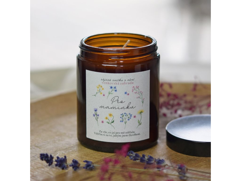 Sójová svíčka je krásným dárkem pro každou maminku Tato kolekce květinově provoněných svíček je báječným dárkem, kterým rozhodně nezklamete! Svíčka obsahuje pouze kvalitní suroviny jako je sójový vosk, 100 % přírodní knot, a příjemnou vůni s názvem Venkovská zahrada. Svíčka je zalitá ve sklenici s hnědým sklem a je vybavena víčkem. Spolu s decentní etiketou tvoří opravdu vkusný dárek. Tato svíčka je perfektní volbou pro ty, kteří chtějí poděkovat mamince milým dárkem. obsah: 150 g vosku Přírodní sójový vosk při hoření nevylučuje žádné škodlivé látky do ovzduší jako to bývá u běžných parafínových svíček a doba hoření je delší až o 50 %.Doplňkové parametry