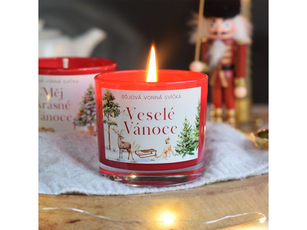 Pro ještě větší zážitek a útulnost jsme svíčku zalili do červeného skla a přidali malovanou etiketu.