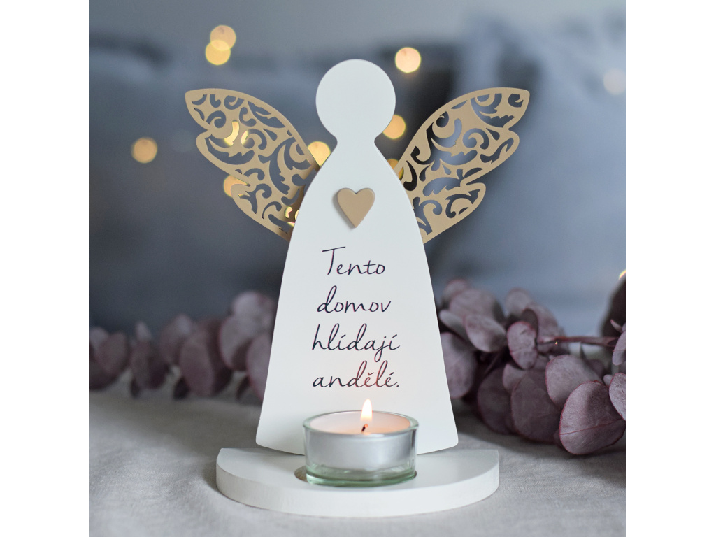 Minimalistický a čistý design je doplněn o český text. Se světlem čajové svíčky vypadají tito andělé opravdu kouzelně.