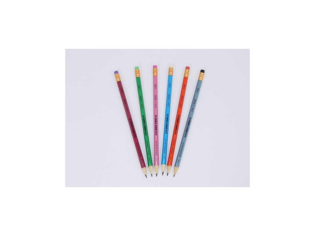 Grafitová školní tužka, tělo z kvalitního dřeva hrocená.Tuha -stupeň č.2- středně tvrdá, opatřena pryží k mazání grafitových čar na konci tužky.