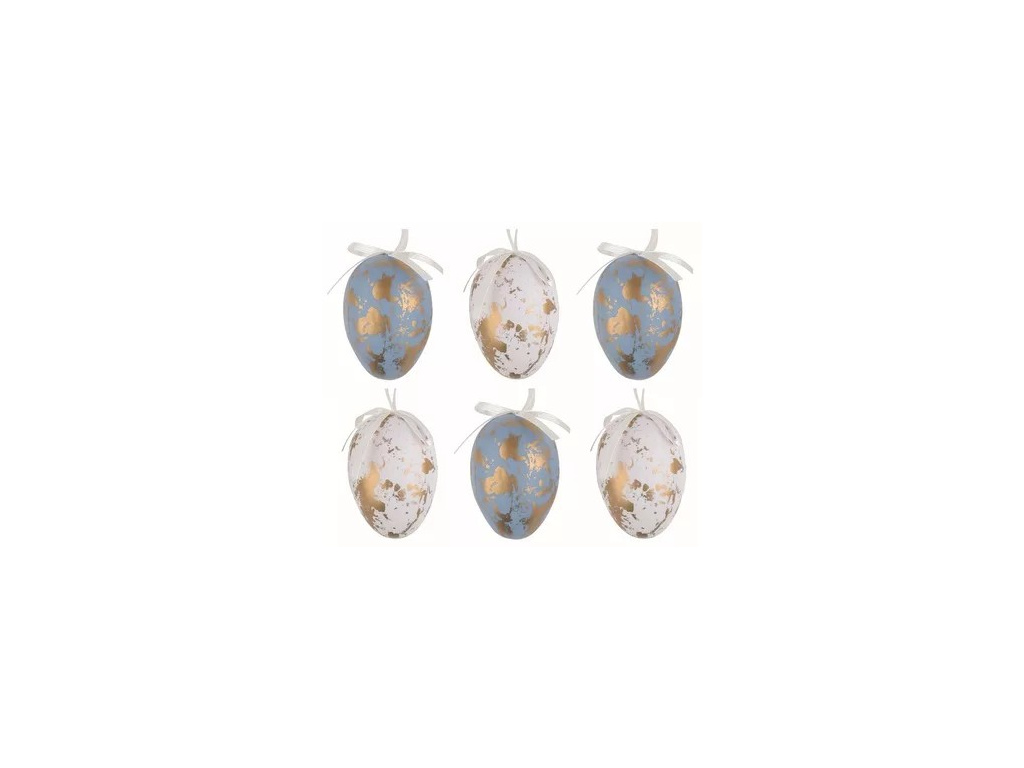 Velikonoční vejce plastová se zlatým dekorem 6 cm na zavěšení, 6 ks v sáčku.
