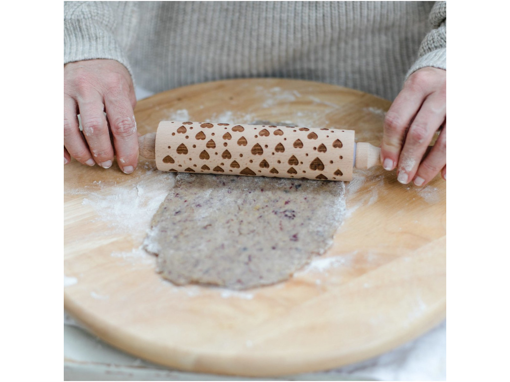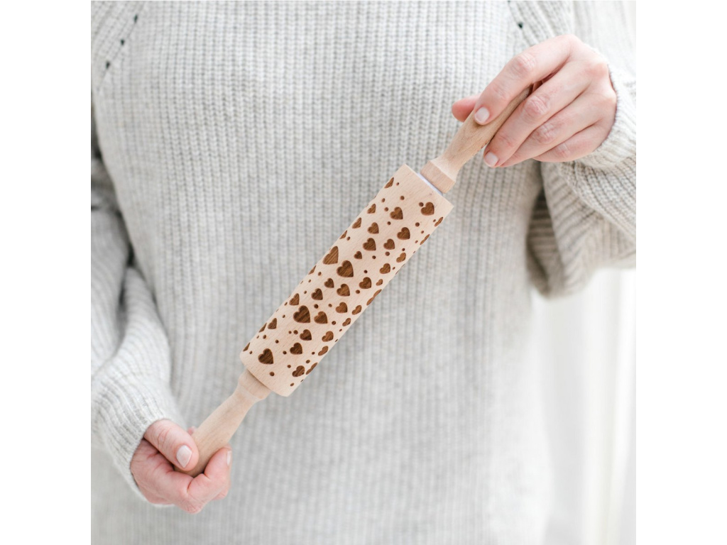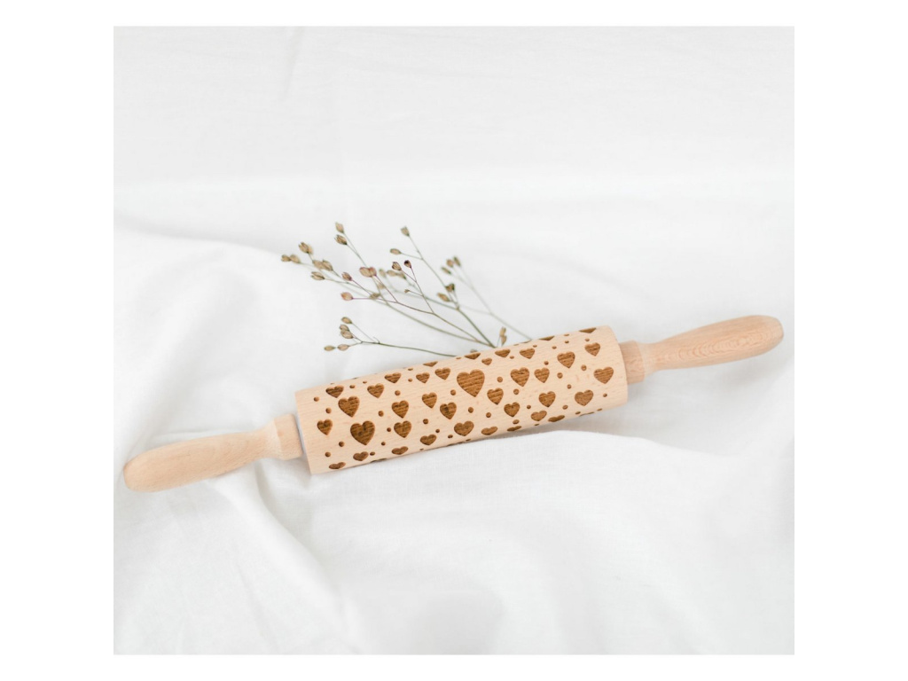 Dřevěný váleček na těsto - srdíčka, 35x4.5 cm