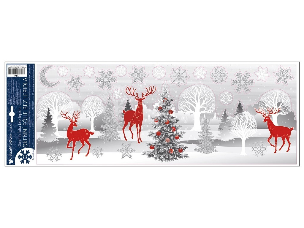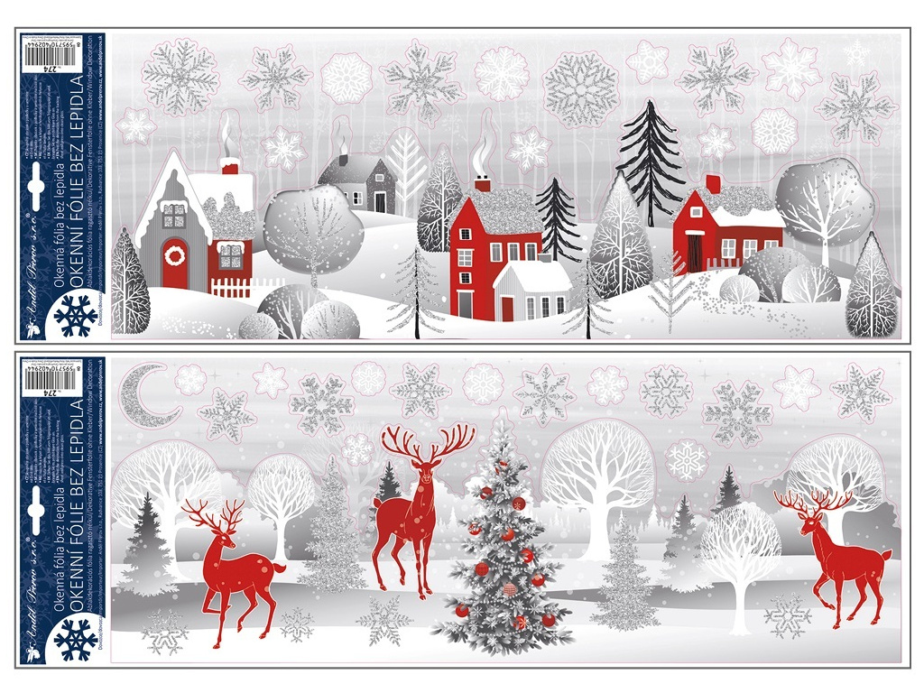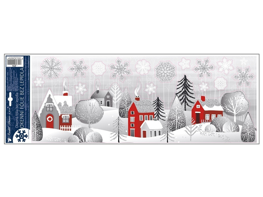 Okenní fólie domky a les s glitrem 21 x 59,5 cm