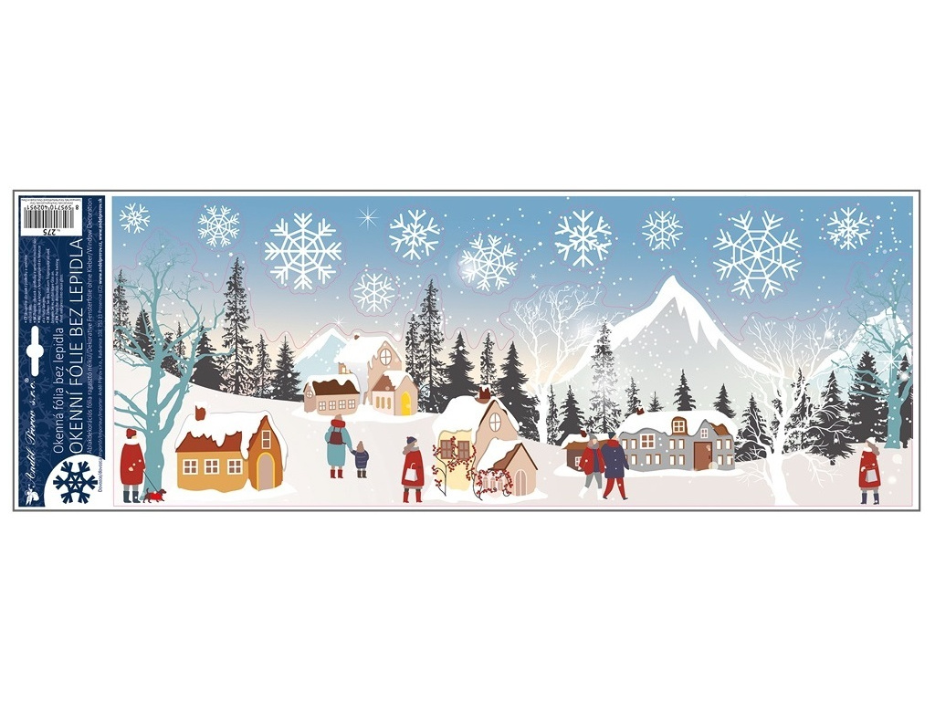 Okenní fólie zimní vesnička s glitrem 21 x 59,5 cm