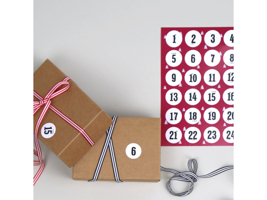 Chtěli byste si sami vyrobit adventní kalendář? Tyto samolepky nesmí chybět! S jeho 24 samolepkami (průměr 20 mm) můžete zkrášlit své dárky. Zmenšený a výrazný - Balthasar zahajuje adventní období v moderním stylu.