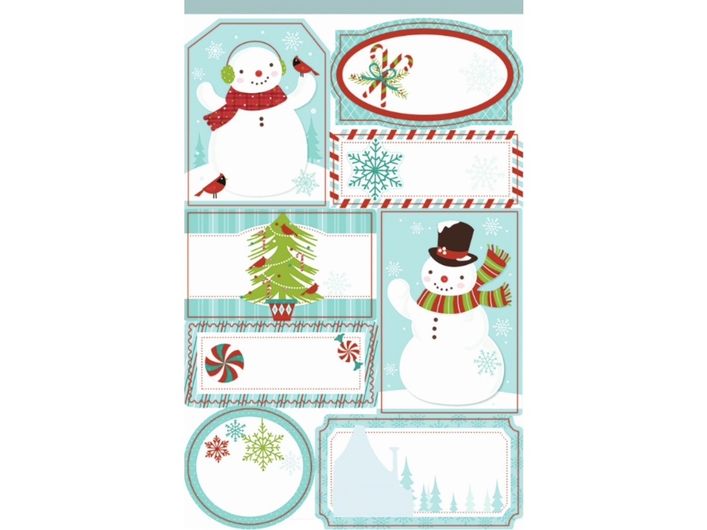 SAMOLEPICÍ JMENOVKY NA DÁRKY 3D S GLITRY 8 KS - SNĚHULÁCI