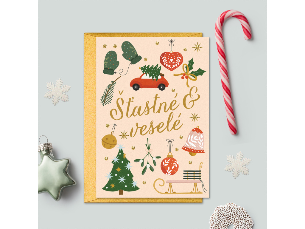 Vánoční přání se zlatou obálkou - Šťastné & veselé!
