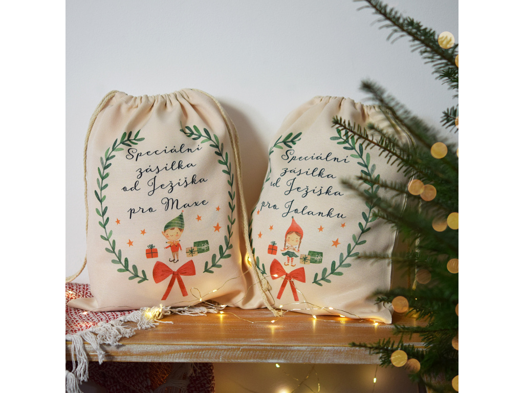 Pro hodné děti tu máme novinku! Krásné pytlíčky zdobené motivy vánočních skřítků.