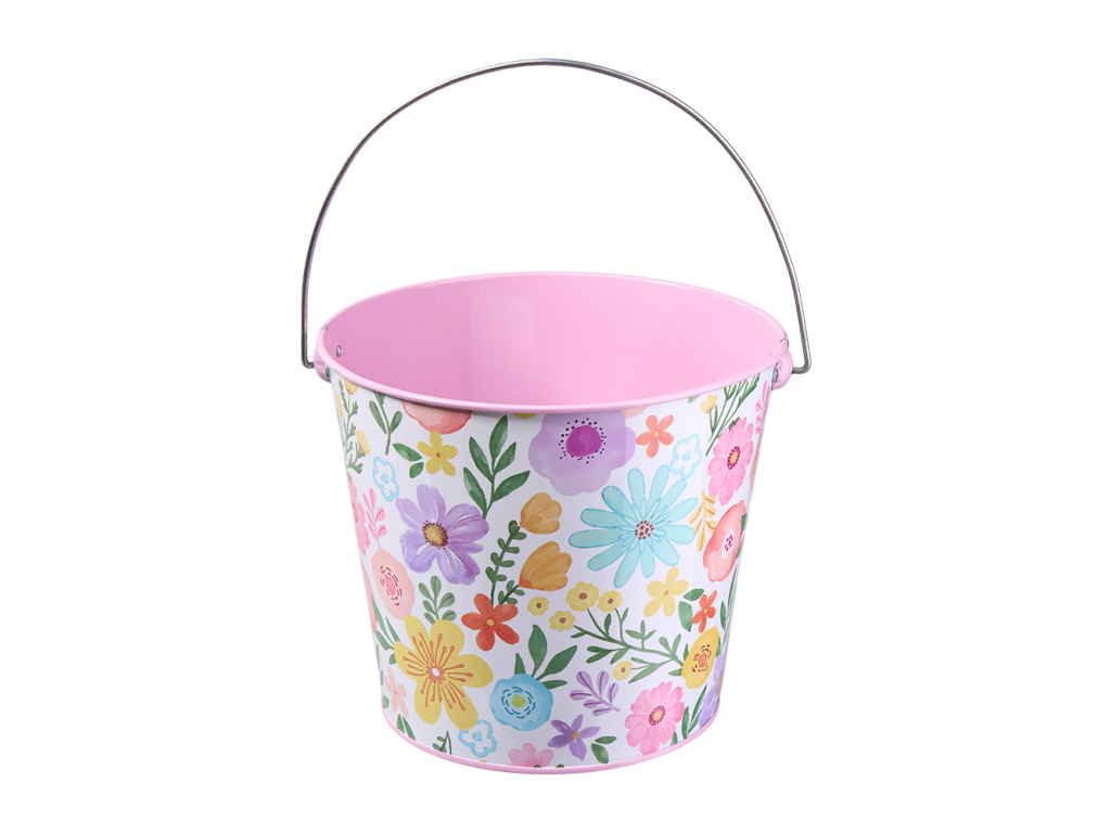 Kovový květináč d17.5 h15 květiny s ucho barevné