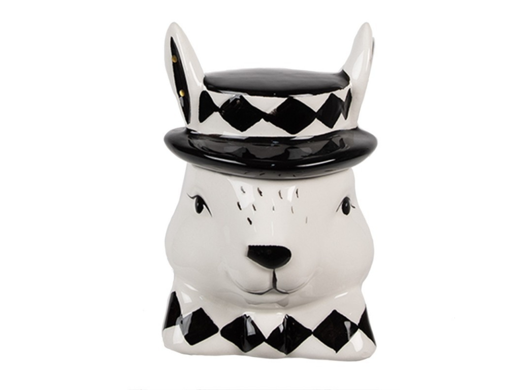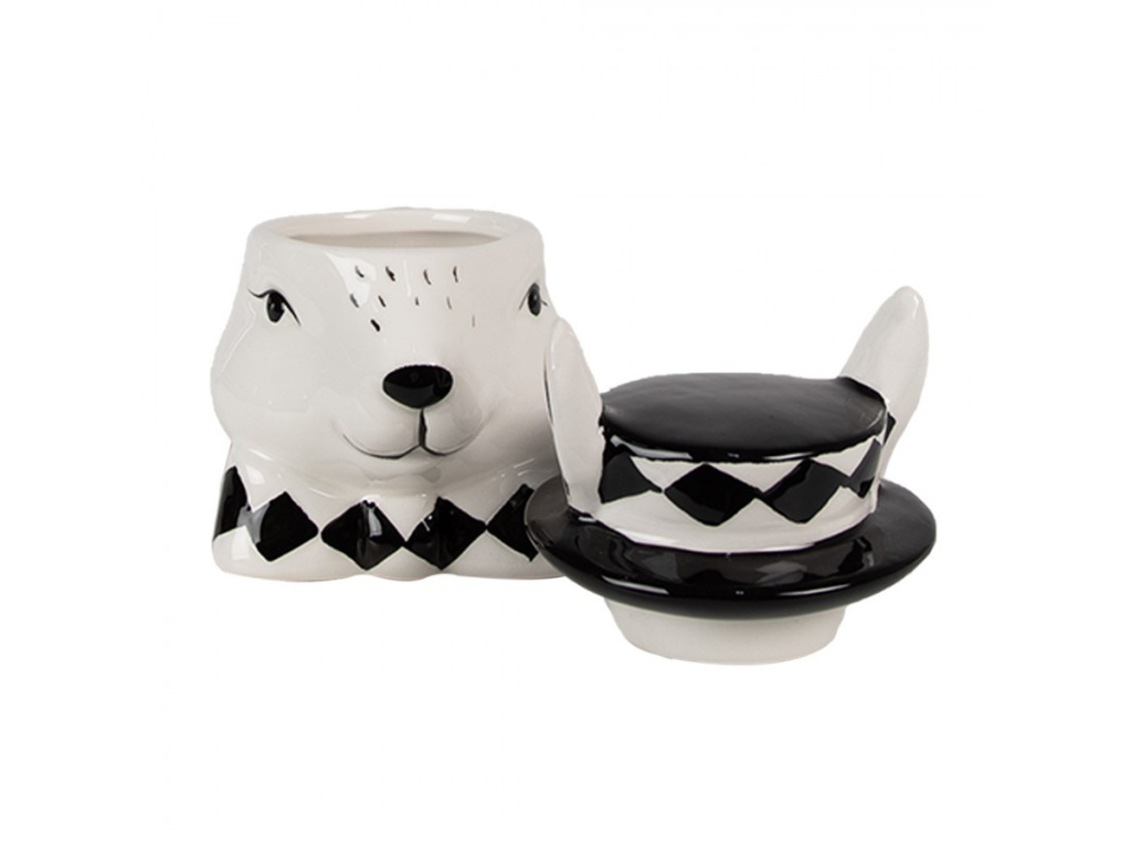 Keramická nádobka zajíček - 9x8x11 cm, černá, bílá