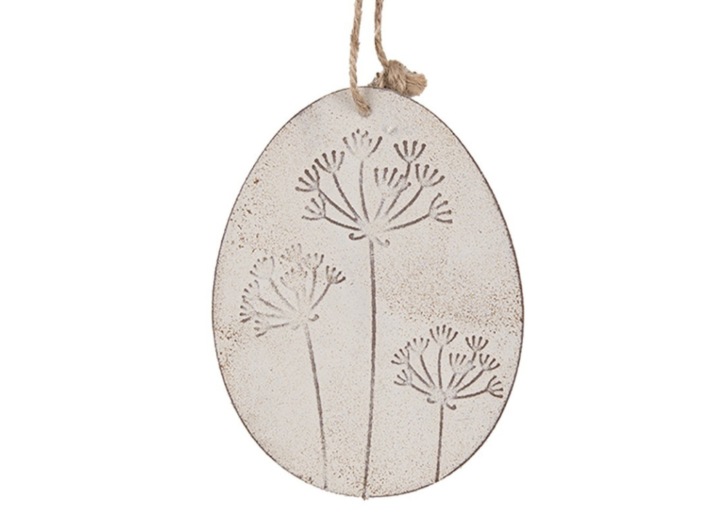 Kovové vajíčko na zavěšení s květinami, 10x8 cm