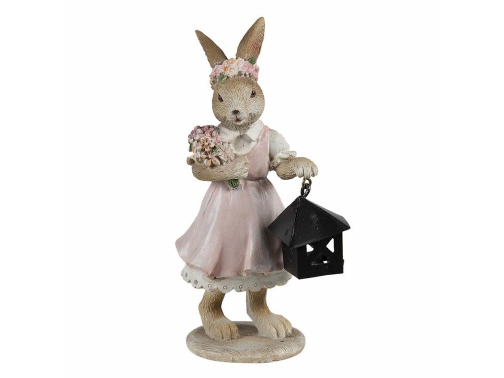 Velikonoční králíček s lucernou - růžový, 7x6x4 cm