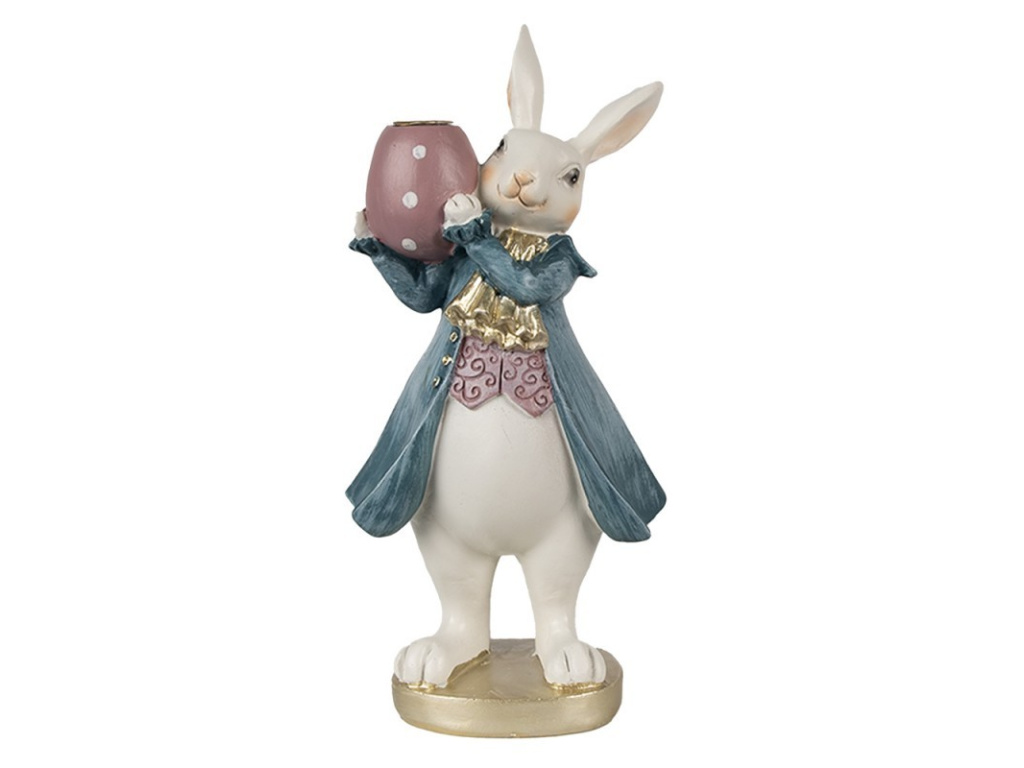 Velikonoční zajíček - svícen, bílo-modrý, 20 cm