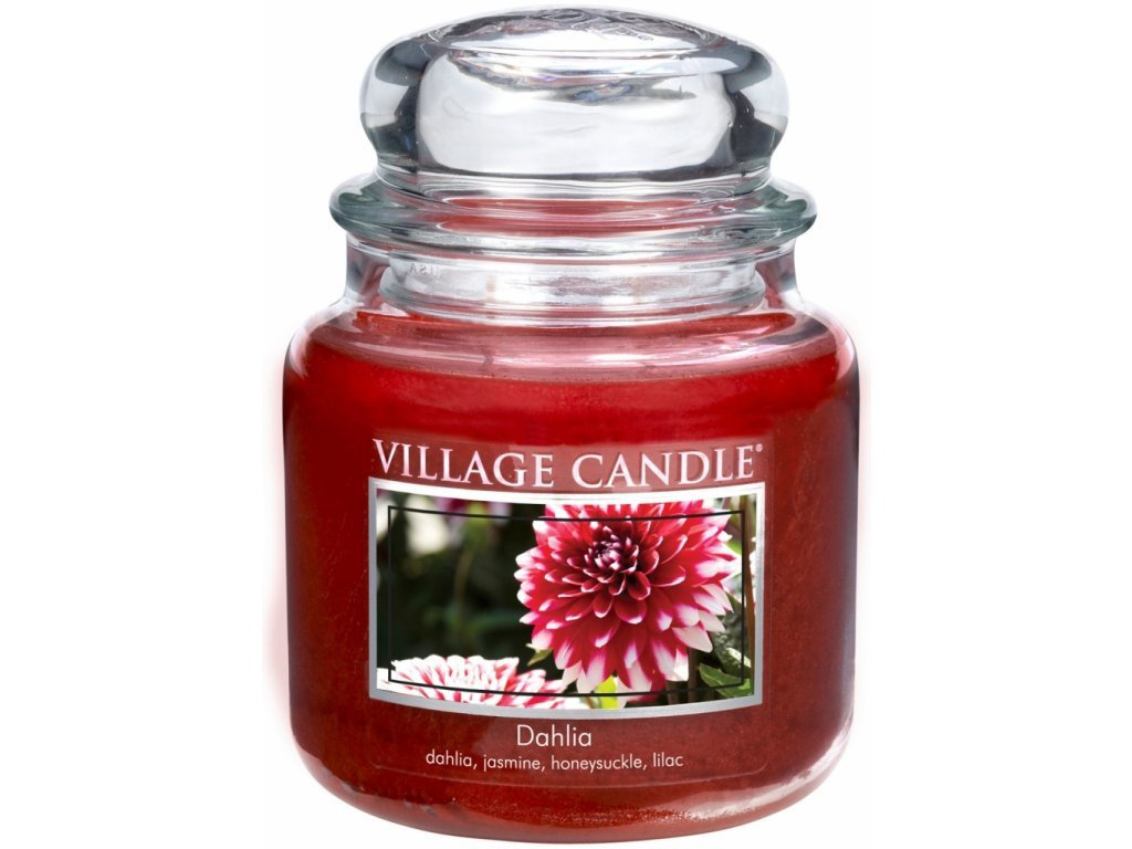 Svíčka s vůní jiřin, jasmínu, zimolezu a šeříku.