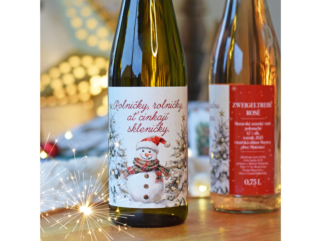 Navoďte si pravou sváteční atmosféru s naším vánočním vínem v krásném dárkovém provedení. Lahev zdobí originální zimní etiketa se sněhulákem v červené čepici, zasněženými větvičkami a ručně psaným vánočním nápisem „Rolničky, rolničky, ať cinkají skleničky.“ Už na první pohled vyvolá úsměv a udělá z této lahve perfektní sezónní dárek.