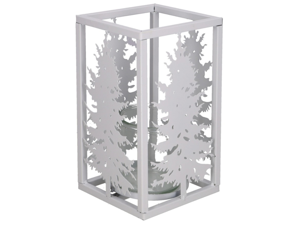 Kovová lucerna s motivem stromu - bílá, 14x25 cm
