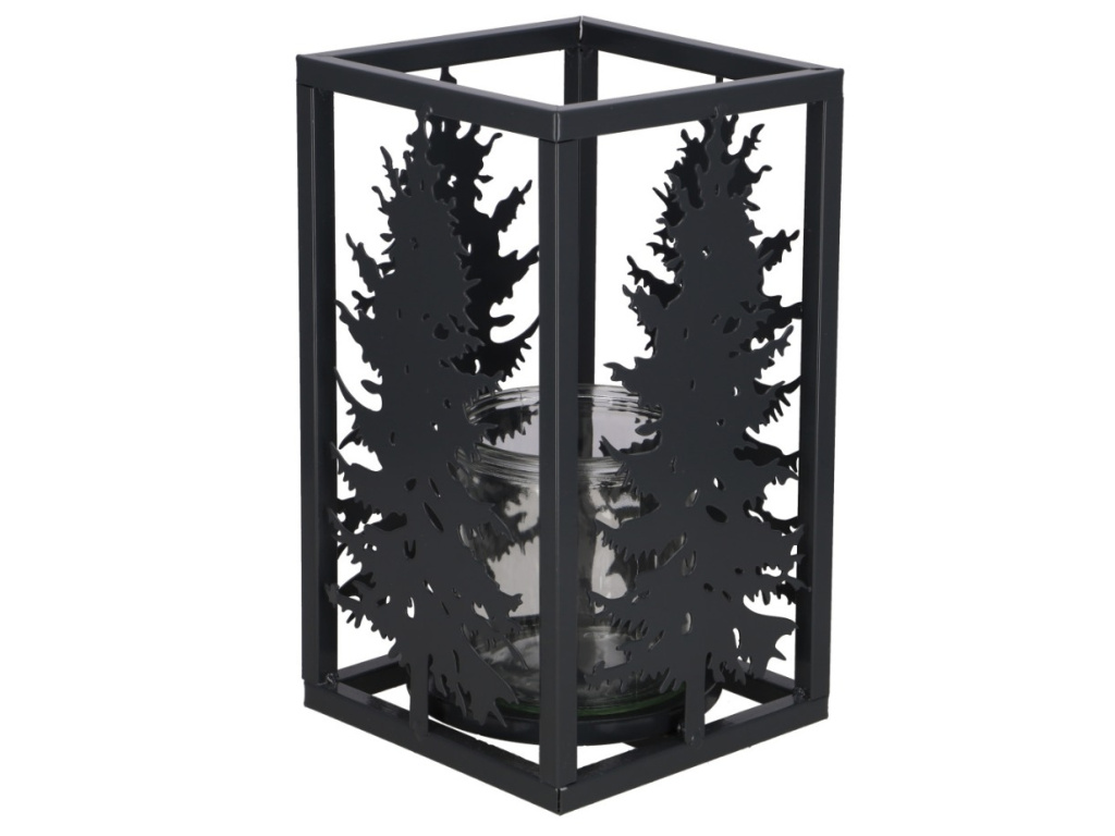 Kovová lucerna s motivem stromu - černá, 14x25 cm
