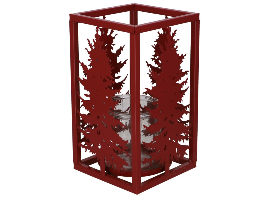 Kovová lucerna s motivem stromu - červená, 14x25 cm