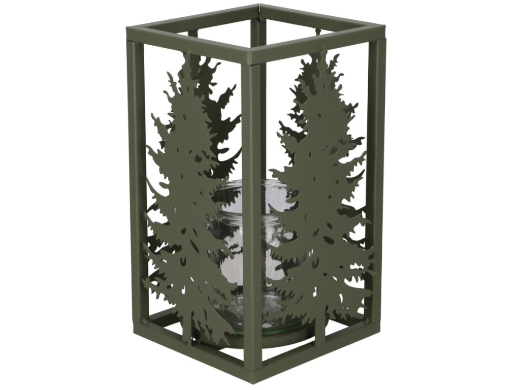 Kovová lucerna s motivem stromu - zelená, 14x25 cm