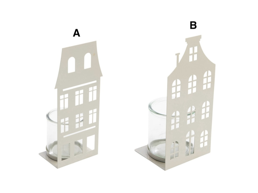 Kovový svícen - domeček, krémový, 24x10 cm