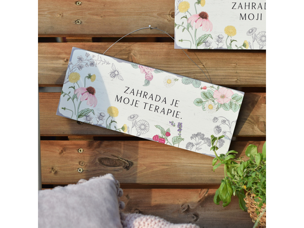 Zahradní cedule s citátem - Zahrada je moje terapie.