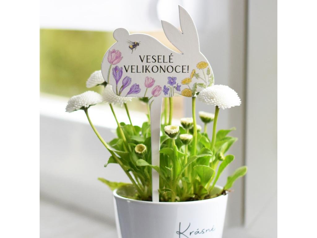 Dřevěný zápich do květináče v podobě roztomilého zajíčka. Oslavte Velikonoce s českými dekoracemi!